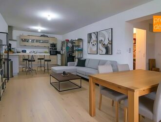 Cet appartement vous offre : une entrée, une belle pièce de vie de 70 m² composée d’un salon/séjour et d’une cuisine ouverte entièrement équipée et aménagée, deux chambres (17 m² et 8 m²) avec parquet, une salle d’eau moderne (5m²), un WC indépendant, ainsi qu'une buanderie (7m²).